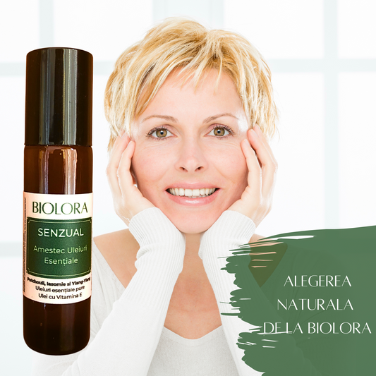 Roll-on uleiuri esentiale Biolora efect Senzual (arome patchouli, iasomie, ylang), 10ml